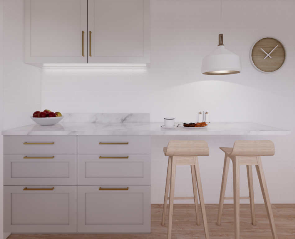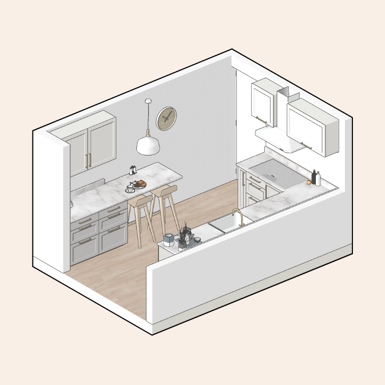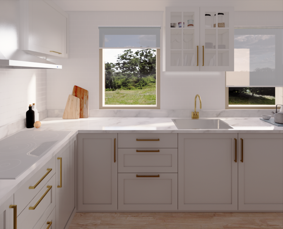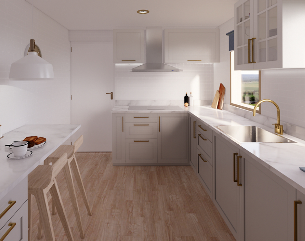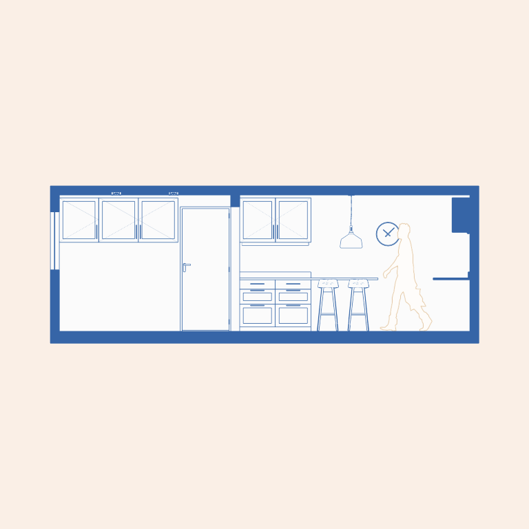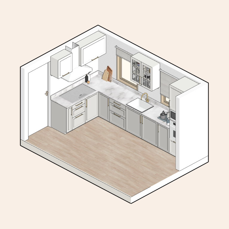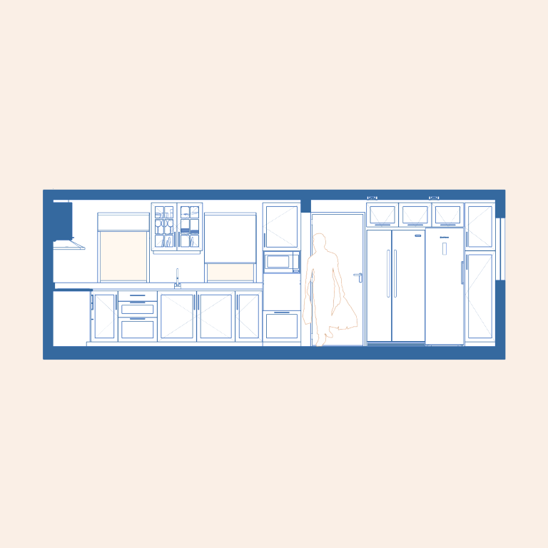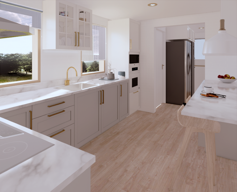 Kitchen renovation with a timeless, classical aesthetic. Custom ergonomic cabinetry maximizes storage and optimizes workflow, while tailored joinery improves functionality in a compact plan.
