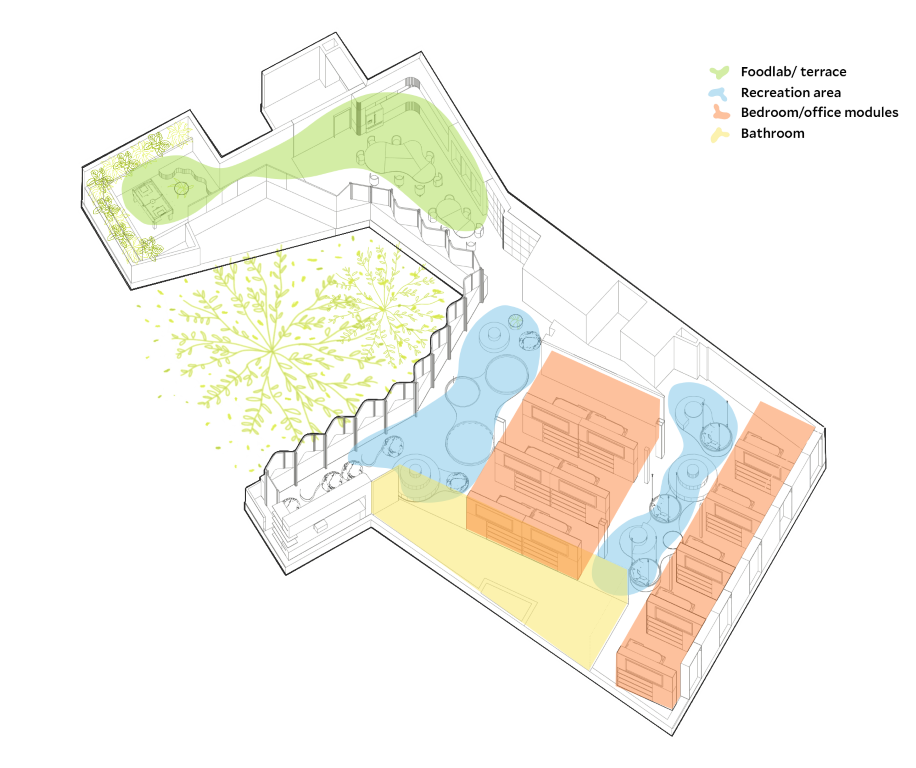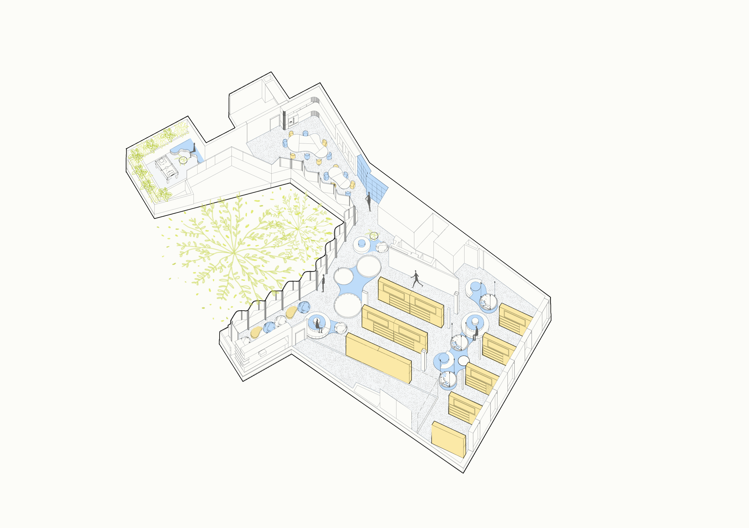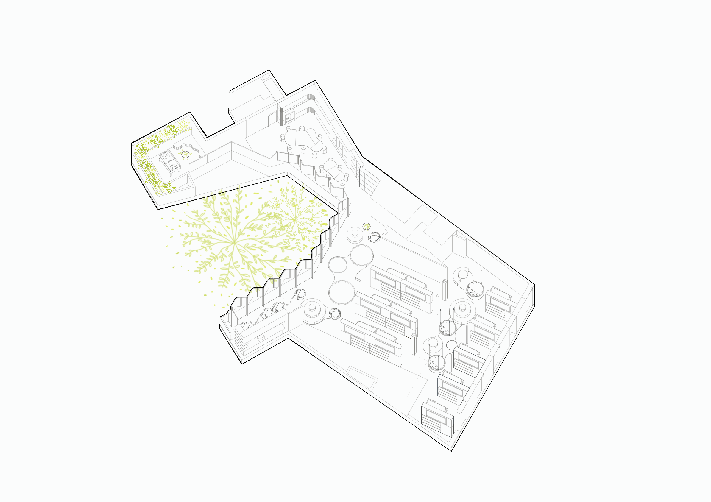 The Alcalá 141 building in Madrid, designed by De Lapuerta + Campo Arquitectos, provided the fourth floor as the basis for this exercise. The brief called for a flexible space where diverse groups of users can carry out a range of activities.