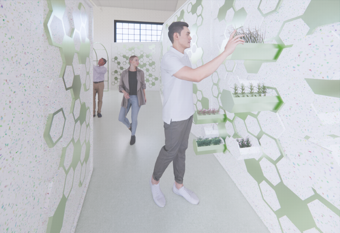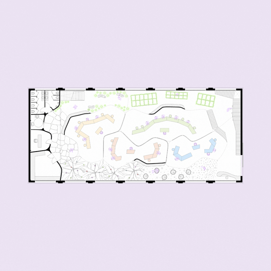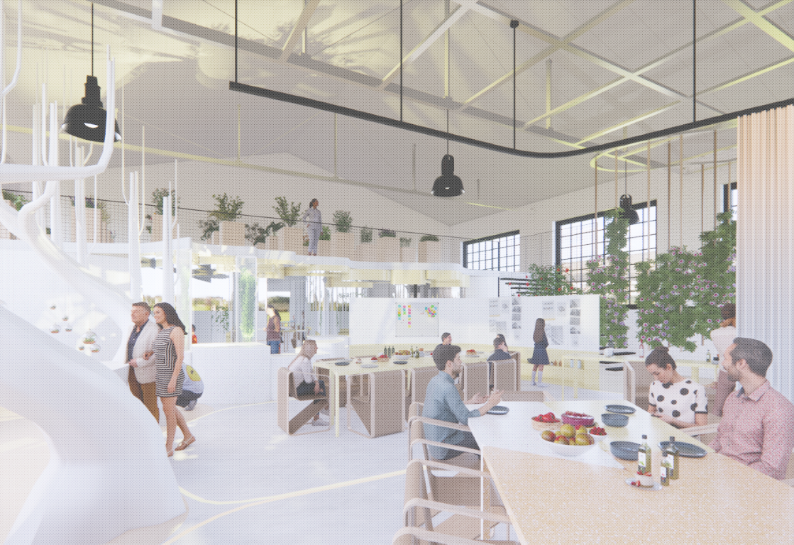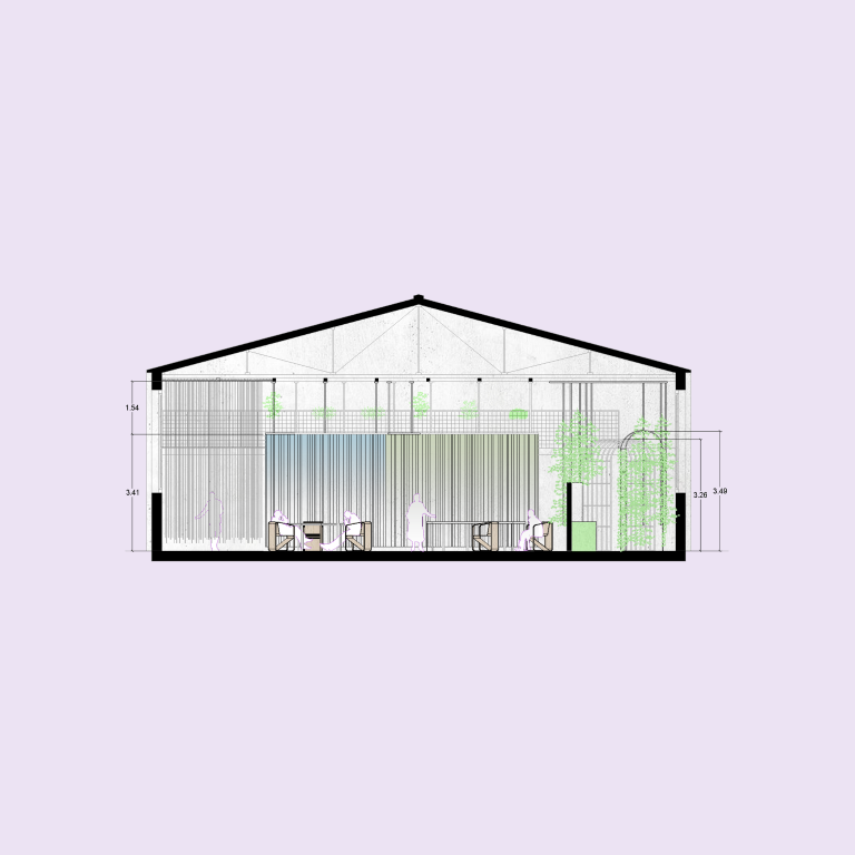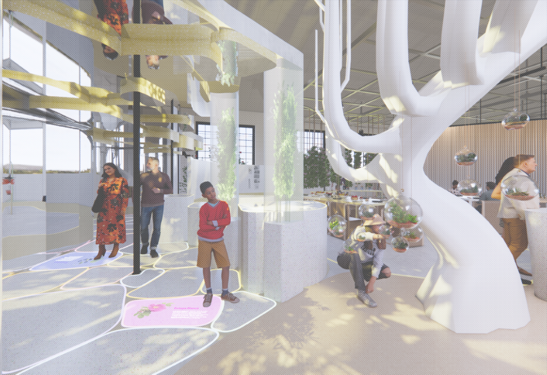A satellite facility for the Scala Naturae Hotel, housed within a 600 m² industrial warehouse. The project includes workshops for organic products derived from local species, an interactive visitor center, showrooms, and tasting areas featuring products sold and used by the hotel. Visitor interaction is tailored to the characteristics of each species: aromatic (smell), edible (taste), and textile (touch). To support this concept, the historic Bourbon orchards are restored and cultivated, providing raw materials for production while simultaneously fostering local tourism.